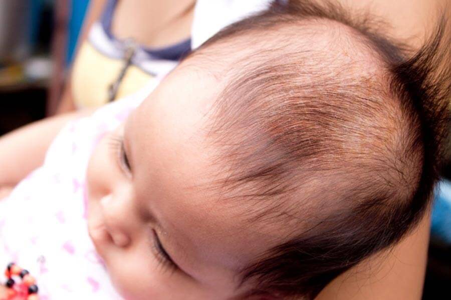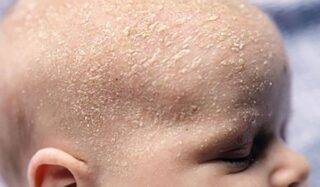 Перхоть у детей грудного возраста выглядит как желтоватые корочки за ушами, на темечке. Отделяясь, частицы остаются на волосах, напоминая себорею. Появляются корочки у грудничка вследствие: