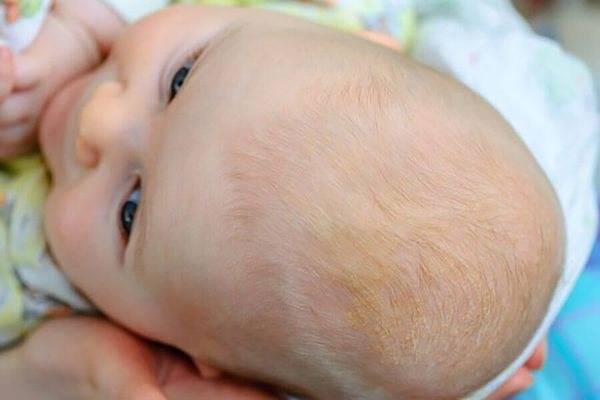 В младенческом возрасте заболевание протекает без сильного покраснения и раздражения кожи, носит генерализованный характер. Плотные корочки образуют на голове «чепчик новорожденного», который покрывает эпидермис, но не нарушает рост волос. Зачастую у малыша наблюдаются признаки атопического дерматита на теле, в паху и подмышечных впадинах, связанные с аллергией на пищевые продукты или смесь.