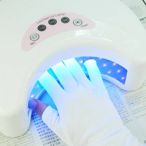 - если выдерживать определенный интервал и не передерживать ногти под сушилкой, а также использовать специальные перчатки, вред от воздействия УФ-лучей практически сводится на нет;