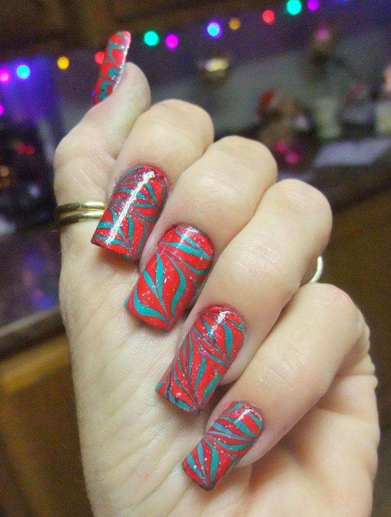 Аккуратно опускаем 1 или 2 ногтя параллельно воде, затем убираем излишки лака на воде и аккуратно вынимаем пальцы. Очищаем кутикулу от лака и покрываем ногти топом (в данном случае EL Corazon №410 Top Shine из коллекции Perfect Nails) и смазываем кутикулу маслом №405 Cuticle Oil, также из коллекции Perfect Nails EL Corazon! После полного впитывания масла получаем вот такой довольно необычный и яркий маникюр!