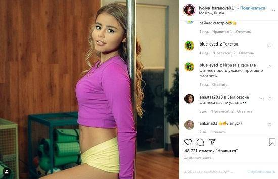 Сейчас Баранова тоже снимается в фильмах. В феврале 2020 года артистка появилась в 3-м сезоне телесериала «Фитнес». Правда, после выхода ленты, все стали замечать, что актриса сильно поправилась. В связи с этим выдвигалось много предположений, ходили слухи о Лёлиной беременности и о гормональном сбое организма. Как бы там ни было, сама Оля никаких комментариев по этому поводу не давала.