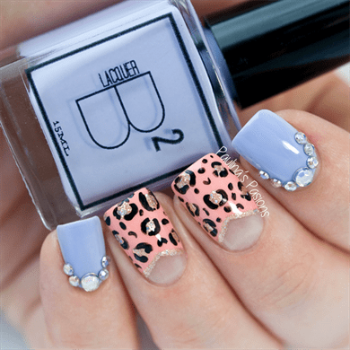Фото-новинки леопардового маникюра с дизайном стразами и блестками