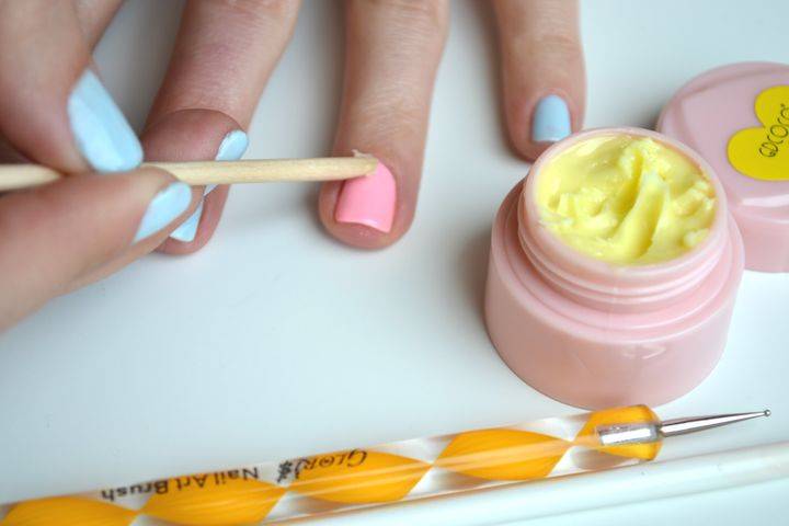 - Перед нанесением объемного рисунка натуральные ногти в обязательном порядке покрываются базовым средством, чтобы материал для лепки не повредил их.