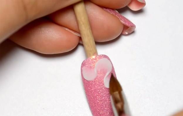 - Поместите шарик на ноготь и максимально быстро сформируйте желаемую форму элемента. Повторите выполнение этого элемента на всех ногтях, согласно Вашей идее;