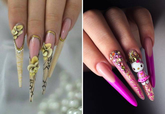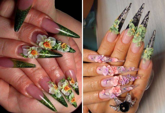 Девушки с красивыми длинными ногтевыми пластинами могут воплощать самые невероятные идеи с объемным и массивным декором