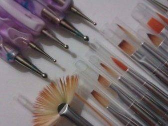 Также потребуются другие материалы и инструменты: основной гель-лак, базовое и топовое покрытие, средство для снятия лака и обезжириватель, ватные тампоны и фольга, кисти и дотс, акриловый порошок и краски, активирующая жидкость, гель, ультрафиолетовая лампа, пушер. Для создания оригинального и роскошного дизайна могут дополнительно пригодиться разнообразные декоративные элементы: бусинки, стразы, бульонки, блеск, микробисер.