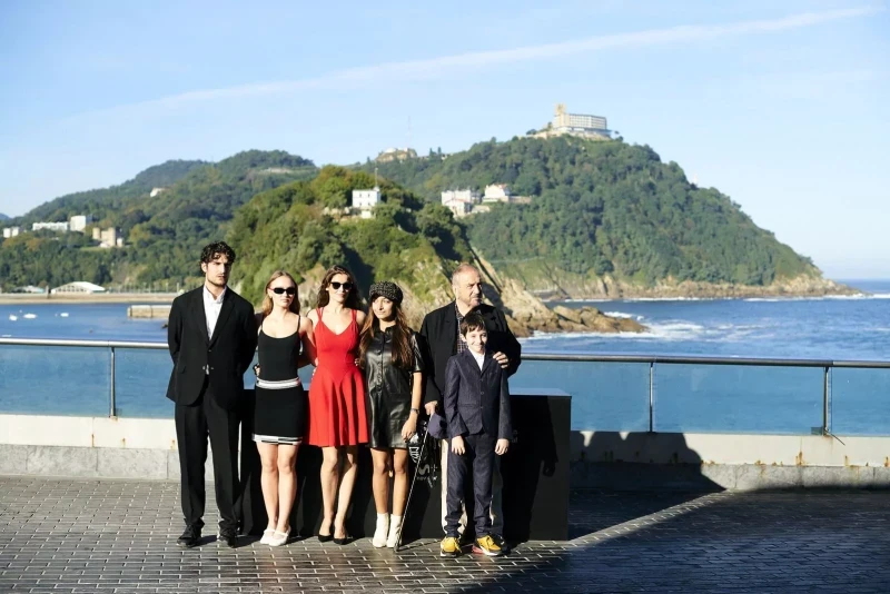 Луи Гаррель, Лили-Роуз Мелоди Депп, Летиция Каста, Кьяра Каррьер, Жан-Клод Каррьер, Жозеф Энжель на фотоколле фильма «Честный человек» в рамках кинофестиваля в Сан-Себастьяне, 22 сентября 2018 г.