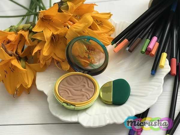 Безумно красивый бронзер. Марка, вообще, славится чудесными креативными упаковками. Здесь идея тропического отдыха, загара, экзотики воплощены идеально! Оттенок прекрасный. Он не рыжий, не кирпичный. Не выглядит инородно на коже. Хорошо тушуется и носится. А еще у бронзера интересный оригинальный силиконовый спонж вместо пуховки или кисти. Главный бонус — аромат тропиков и кокоса. Это восторг!