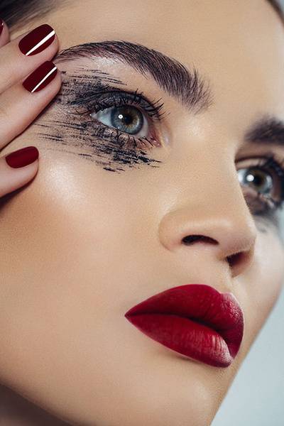 Если речь идет о вечернем макияже, то его контрастное решение может быть оправдано. Выполненный опытной рукой, такой мейкап оживляет ровное бледное сияние лица. В этом плане очень эффектно смотрятся цветные стрелки, позволяющие подчеркнуть красоту глаз, «раскрыть» взгляд.