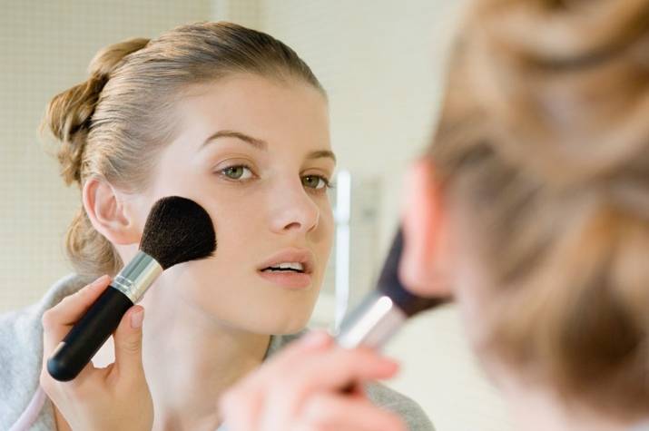 - Пудра. Это средство необходимо девушкам с жирной кожей. Пудра задержит появление некрасивого блеска на лице, а также прибавит стойкости макияжу.