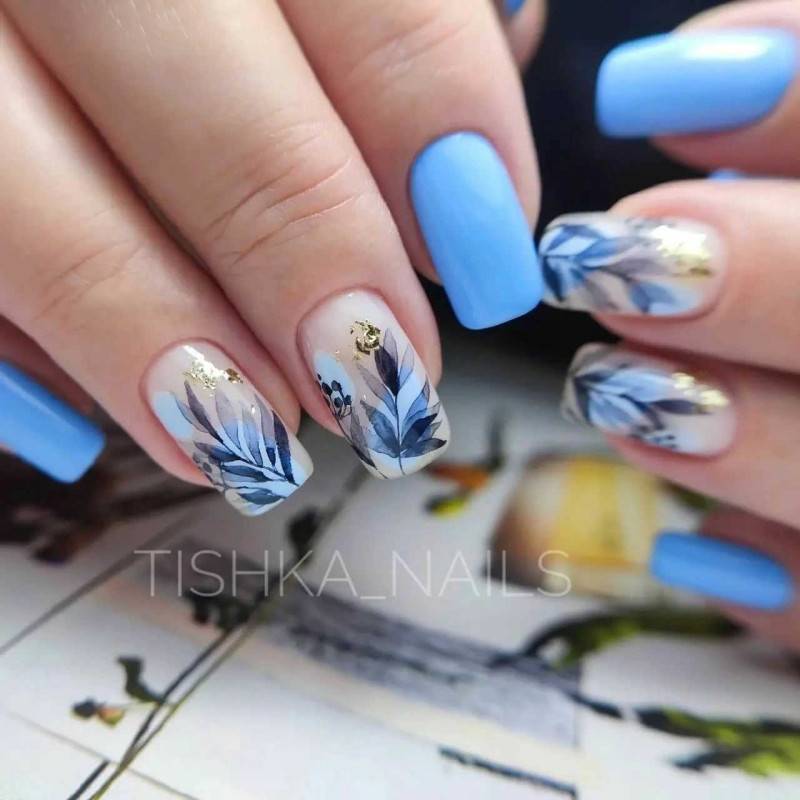 Фантазия нейл-мастеров не иссякнет никогда. В этом году они предлагают свежие идеи с природными мотивами. В данном случае речь идет о тропическом маникюре, который отличается особой яркостью. Он предполагает стильное сочетание ярких крупных листьев с геометрическими деталями. Это могут быть фигуры и полоски, которые добавляют дизайну сдержанности. В свою очередь, листья могут быть нарисованы вручную, чтобы детали выглядели максимально натурально. Втирка, фольга и блестки — прекрасное украшение, которое помогает сделать дизайн более заметным, активным. Но в данном случае многое зависит от размера рисунка.