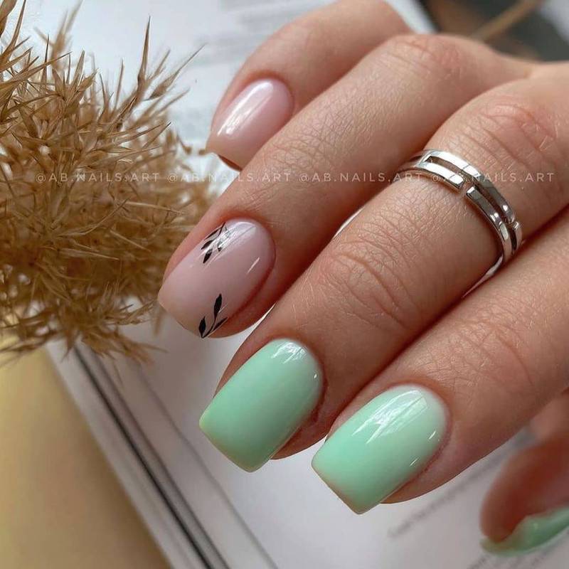 Комбинируйте с другими модными пастельными оттенками, например, розовым, молочным. Сочетание светло-бирюзового лака с серебристым придают больше оригинальности летним дизайнам ногтей.