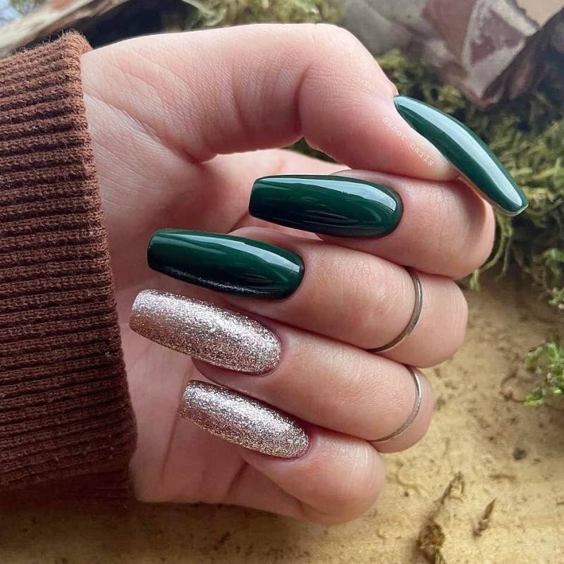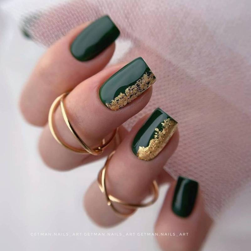 Волнующий изумрудный лак в новом сезоне особенно актуально комбинировать с золотыми акцентами. С такой изюминкой привычный цвет однозначно заиграет по-новому.