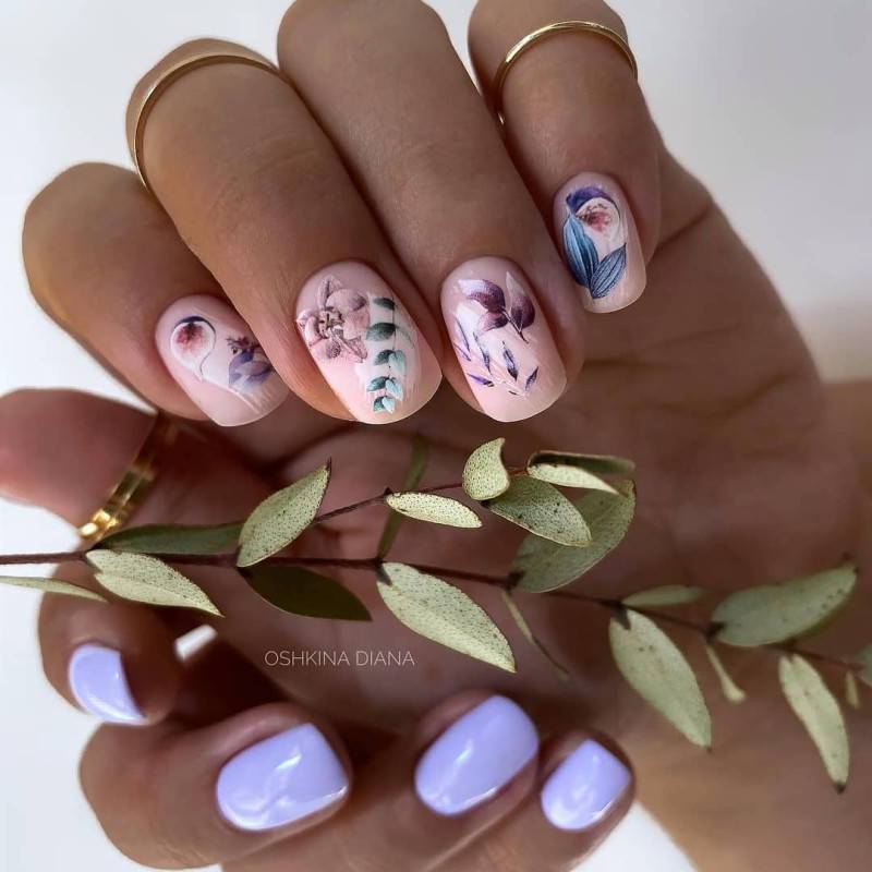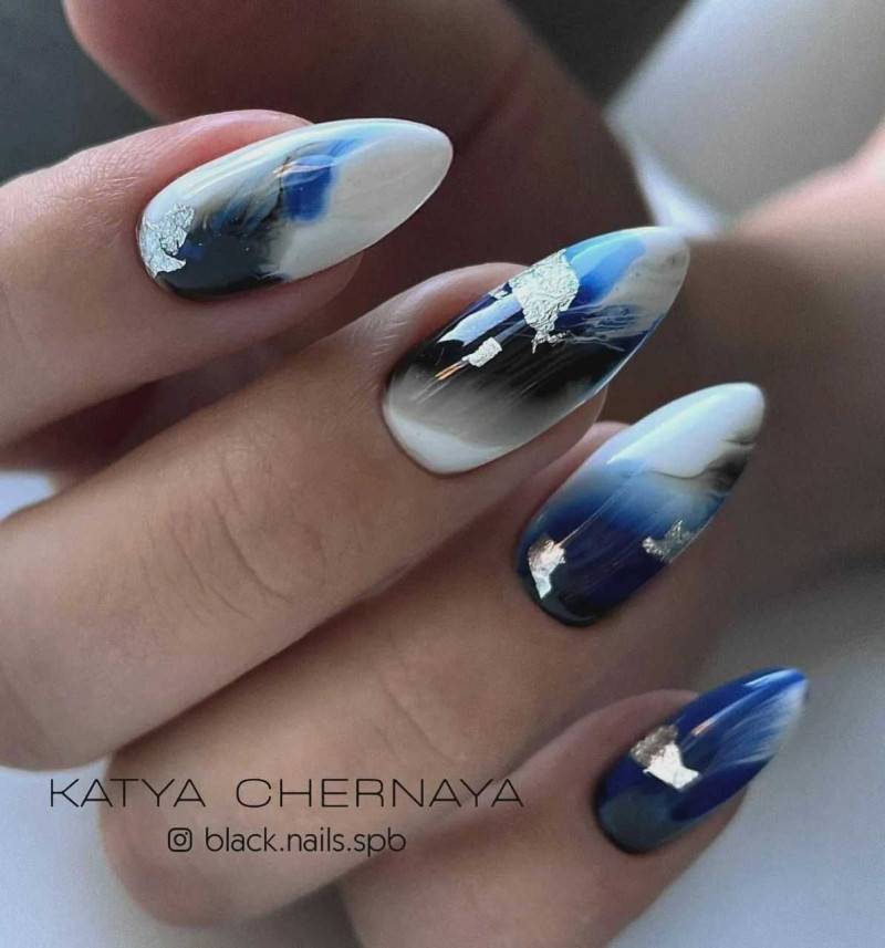 Новинка 2022 года — мазки кистью. Это один из самых простых способов создания креативного рисунка на ноготках. Здесь есть один нюанс: цвета гель-лака должны быть подобраны правильно, сочетаться между собой и создавать неповторимую иллюстрацию.