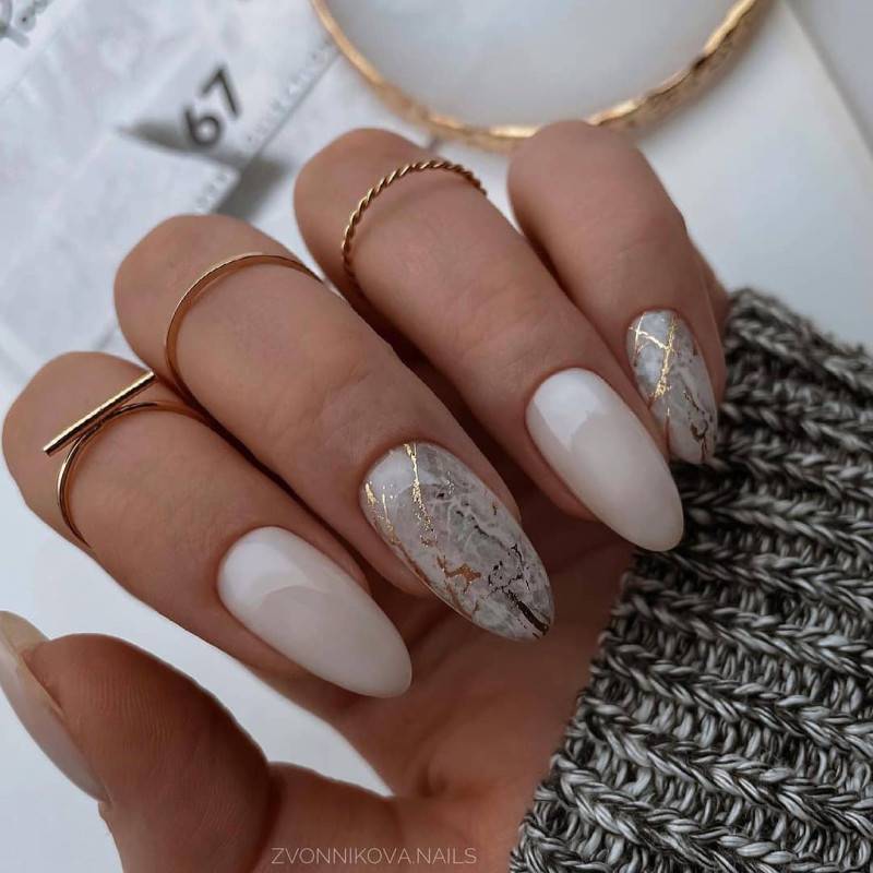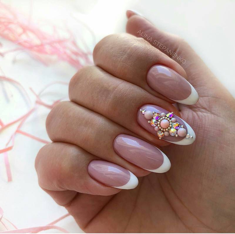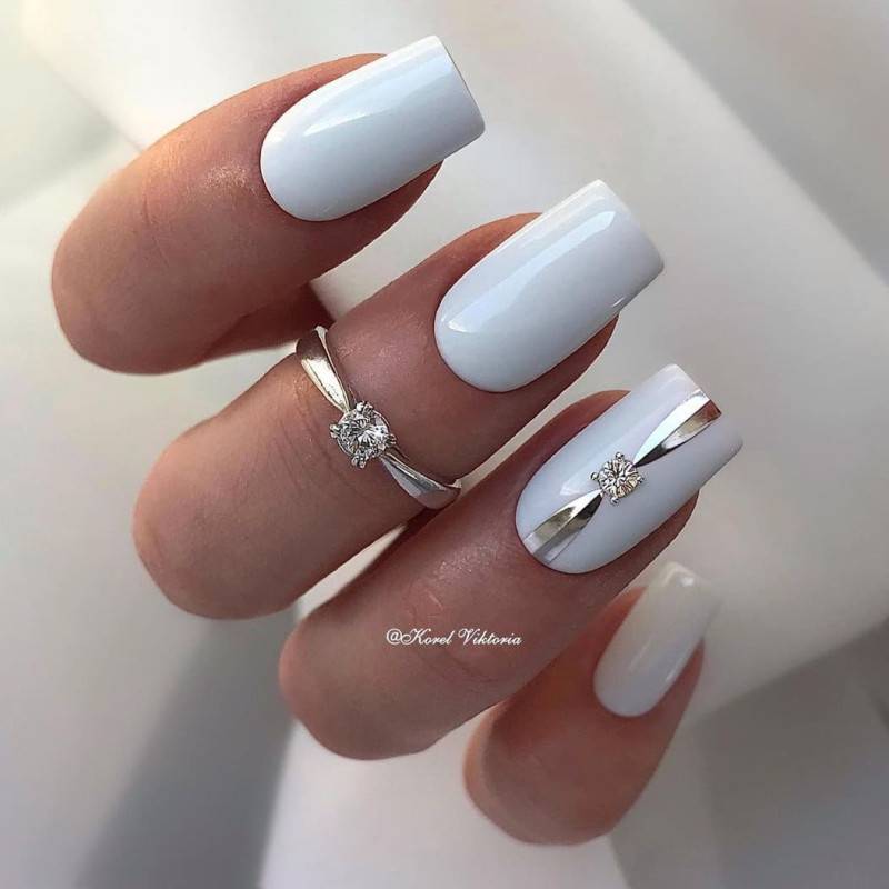 - Это нежный оттенок белого — он может добавить элегантности и изящества в дизайн ногтей со стразами.
