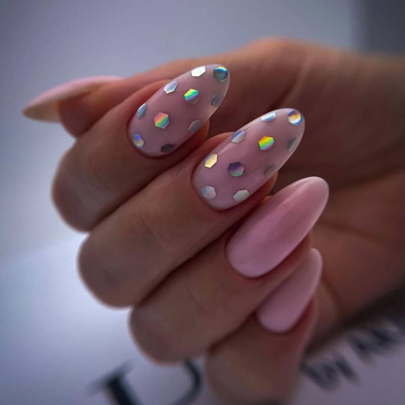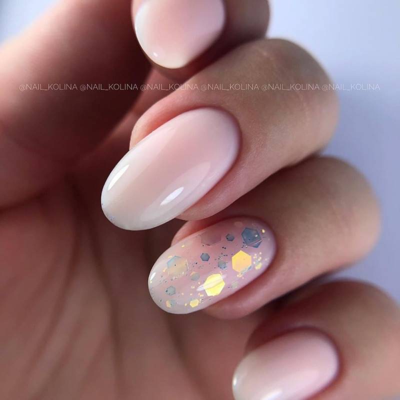 Безупречный летний дизайн совершенно точно не будет против расставления сверкающих акцентов. При солнечных лучах подобный маникюр раскроет всю свою эффектность и выразительность. Но стилисты предупреждают – глиттер в покрытии всей пластины уже не выглядит актуально. Лучше с чувством меры расставлять сверкающие акценты на некоторых ногтях и комбинировать их с однотонным покрытием.
