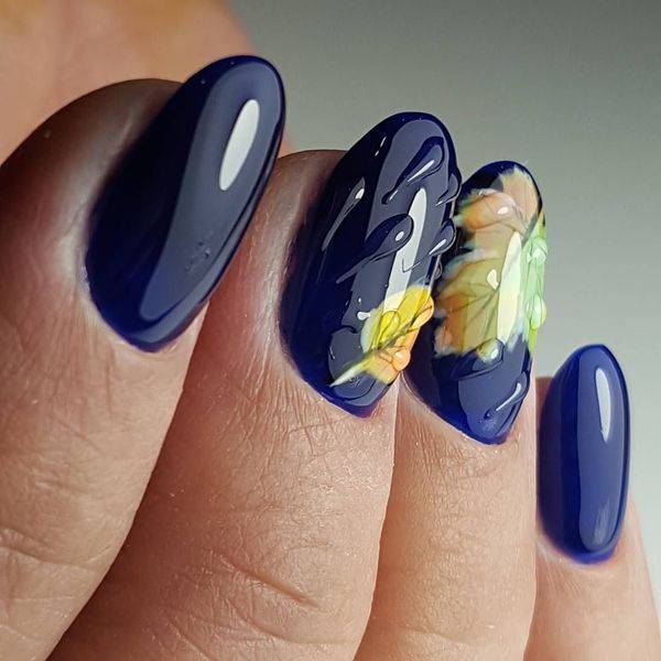 - Осень — хорошая пора для загадочных и натуральных цветов. Используйте лимонный, липовый, фиолетовый, бордовый, лиловый, белый и многие другие цвета. В плохую погоду можете окрасить свои ногти в черный или синий цвет — такая расцветка выглядит мрачно, однако она будет полностью соответствовать погоде за окном.