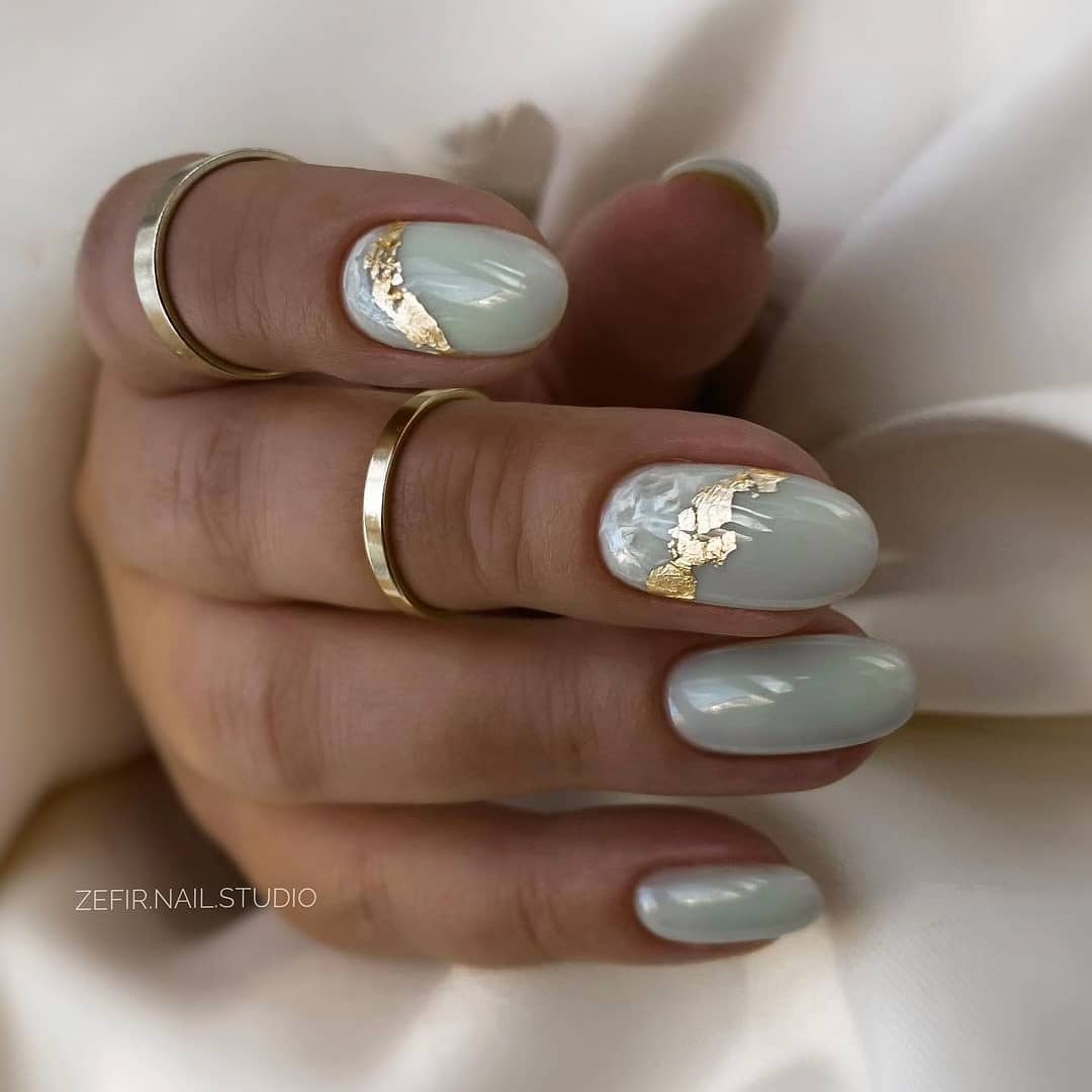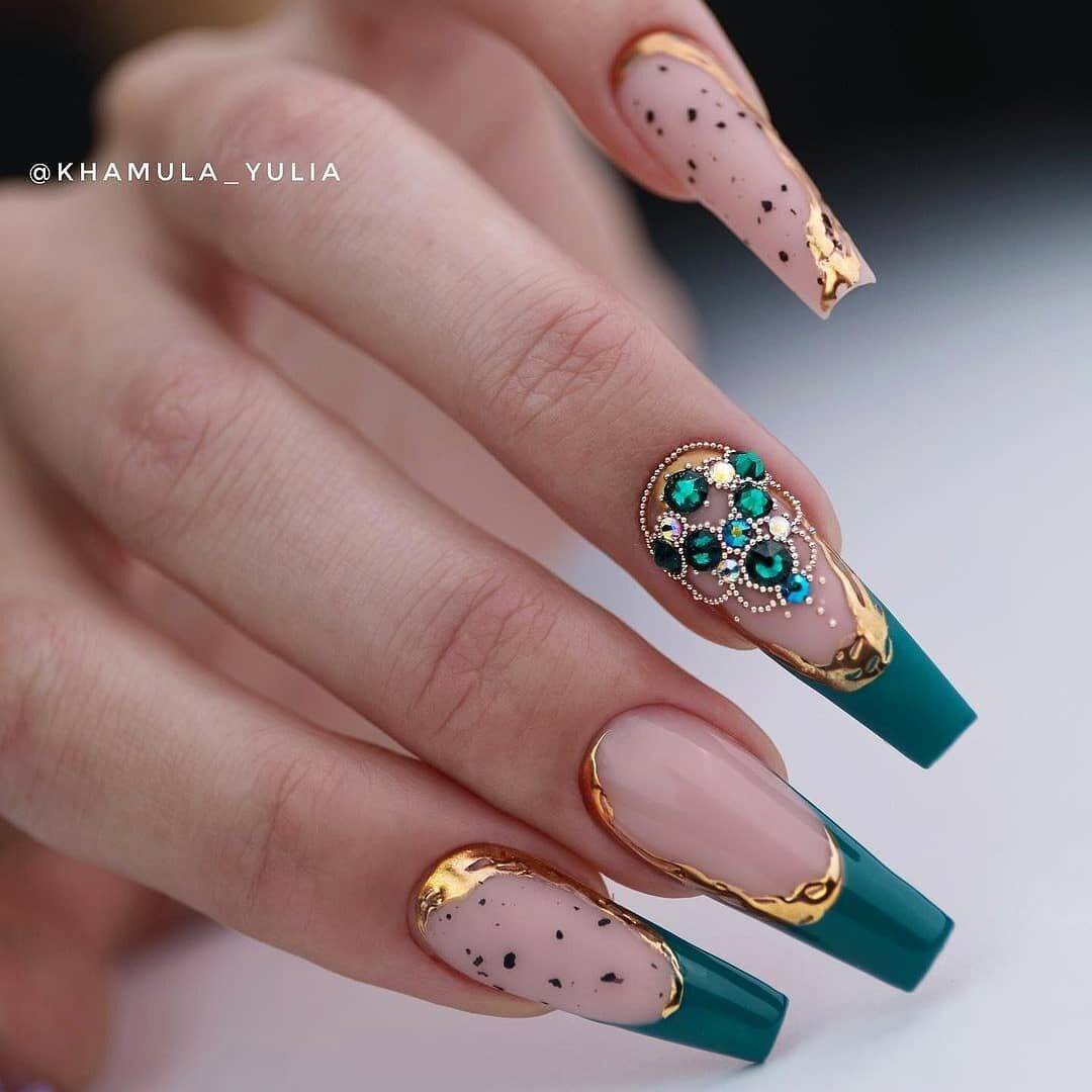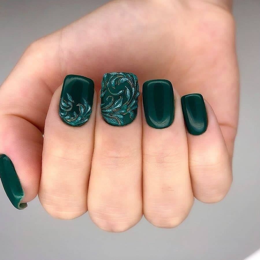 Волнующий изумрудный лак в новом сезоне особенно актуально комбинировать с золотыми акцентами. С такой изюминкой привычный цвет однозначно заиграет по-новому.