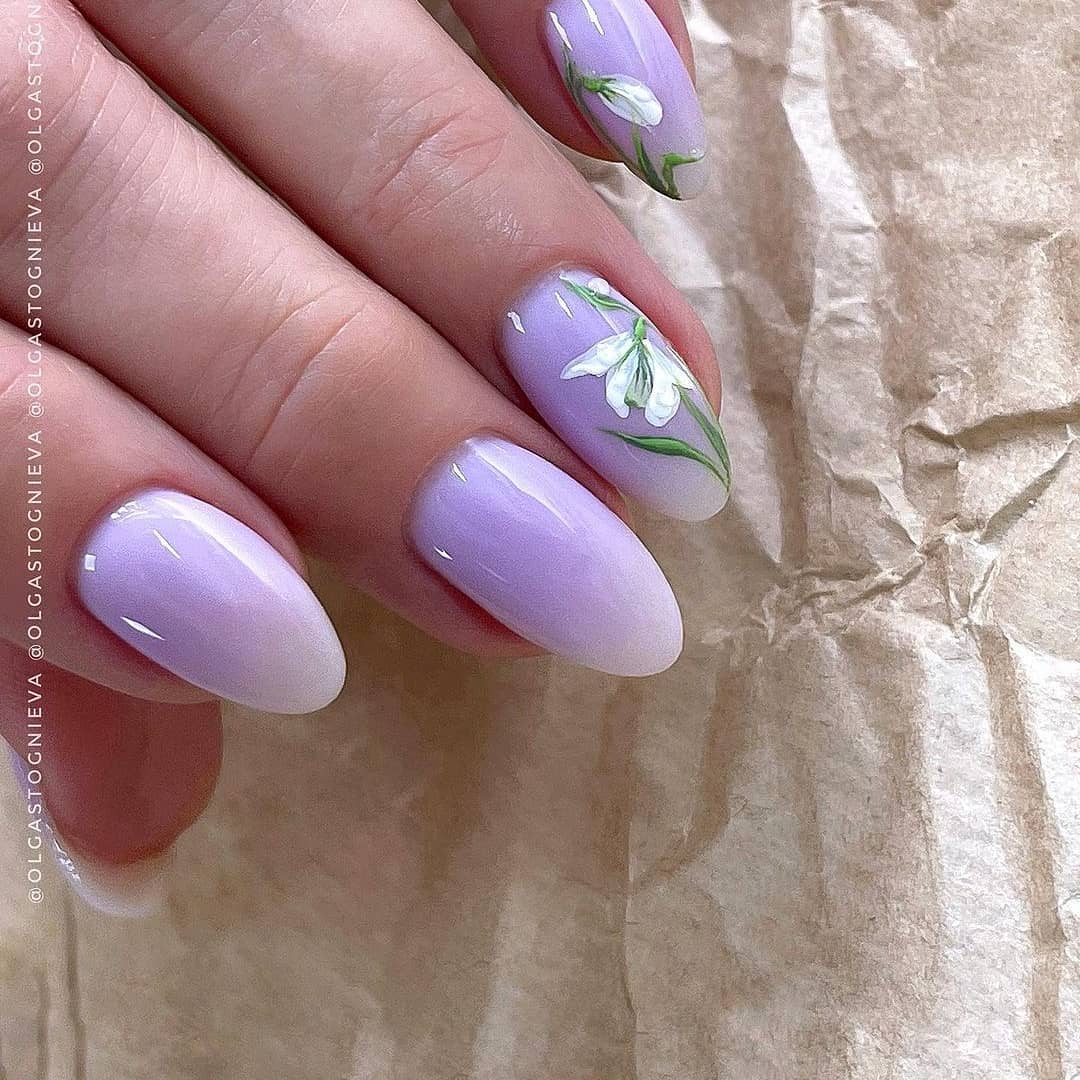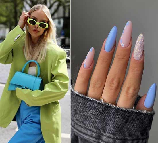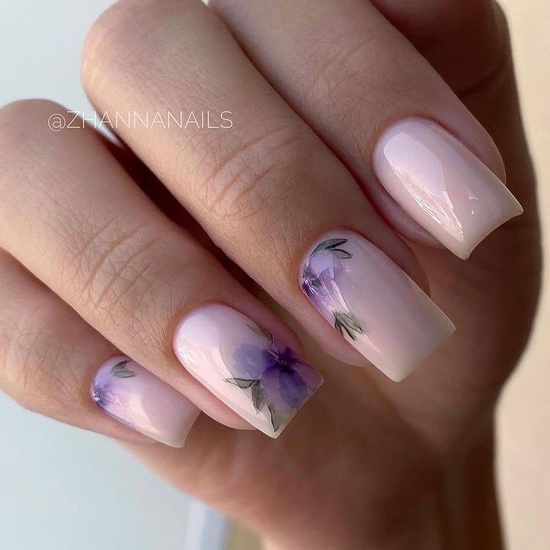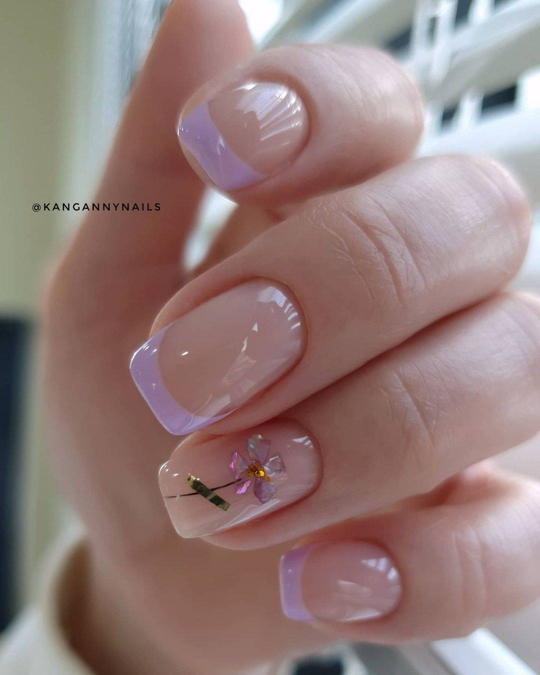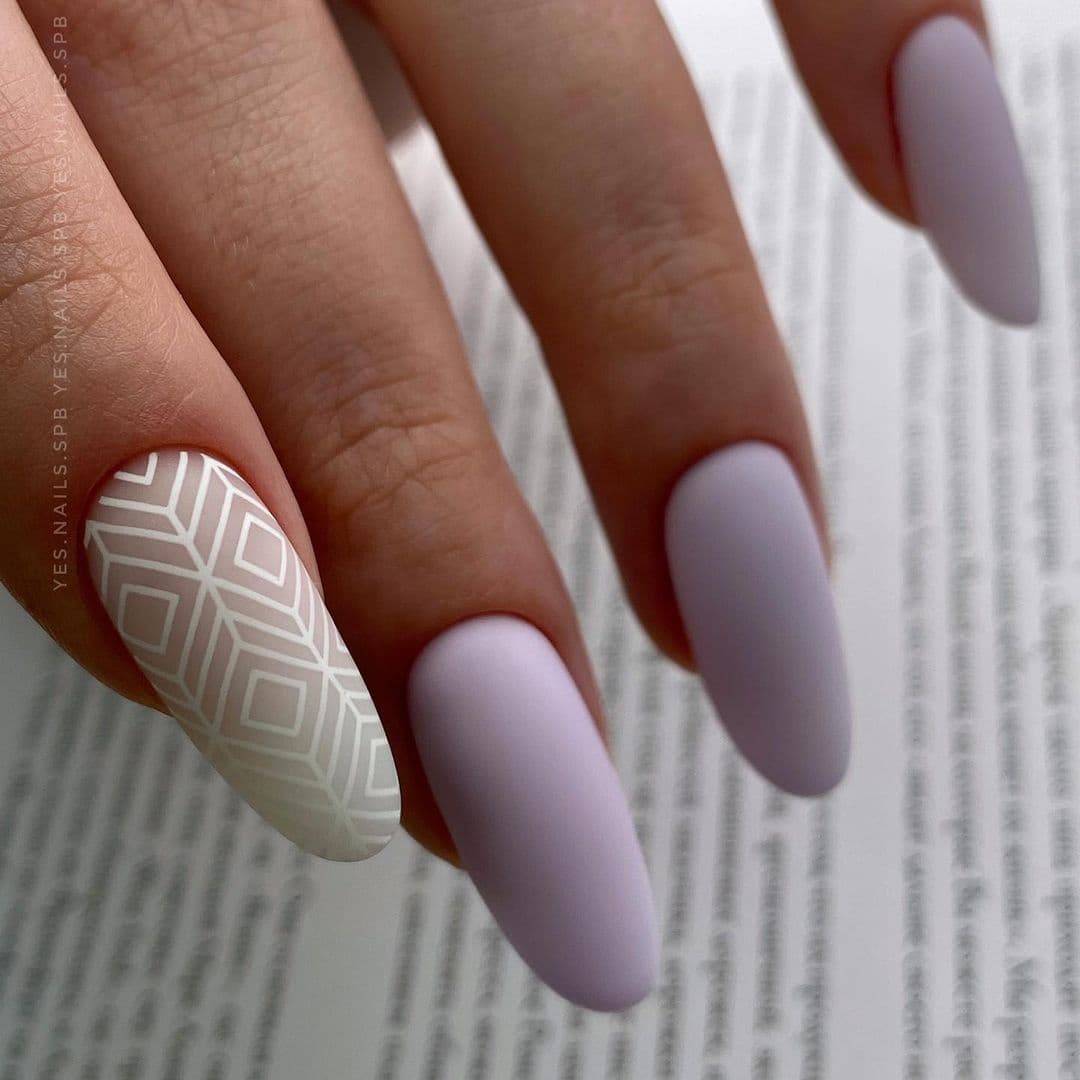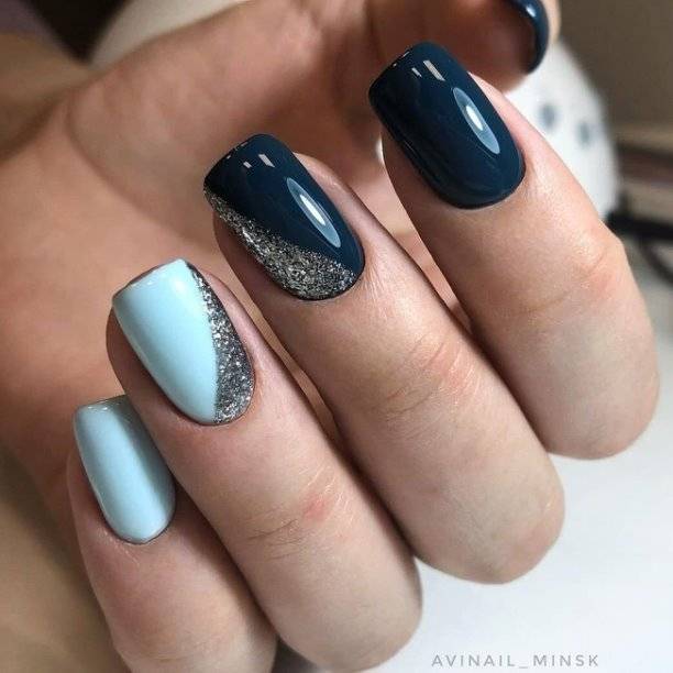 Вместе с модными синими и голубыми акцентами потрясающе будет смотреться фиолетовый лак. Это одна из самых красивых и стильных комбинаций 2020 года!
