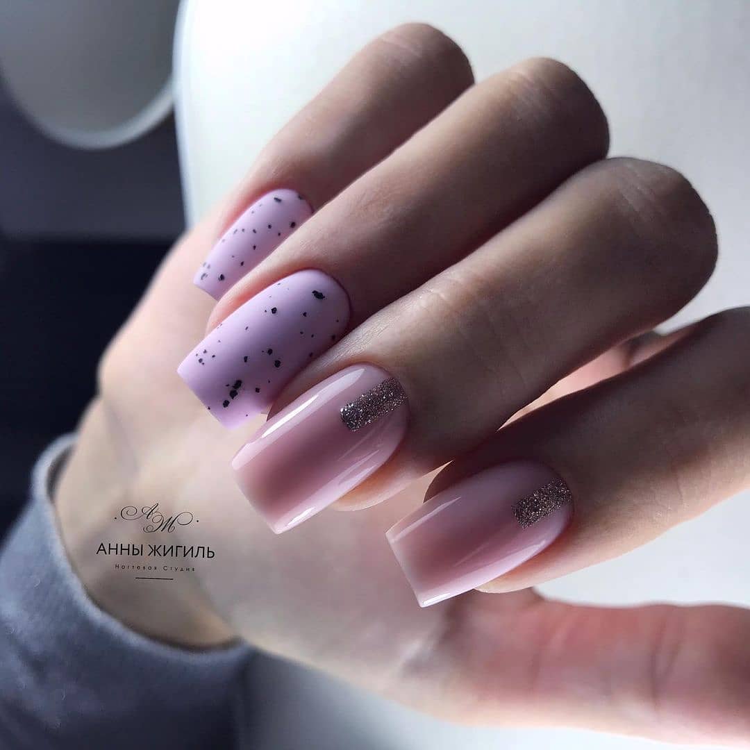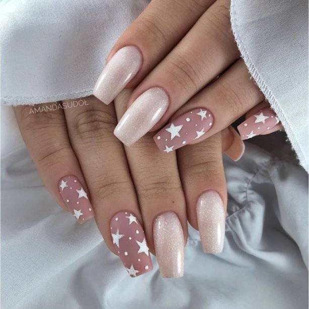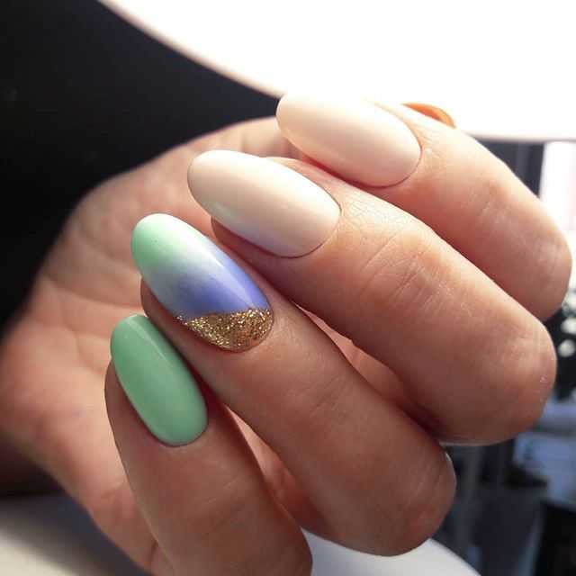Безупречный летний дизайн совершенно точно не будет против расставления сверкающих акцентов. При солнечных лучах подобный маникюр раскроет всю свою эффектность и выразительность. Но стилисты предупреждают – глиттер в покрытии всей пластины уже не выглядит актуально. Лучше с чувством меры расставлять сверкающие акценты на некоторых ногтях и комбинировать их с однотонным покрытием.