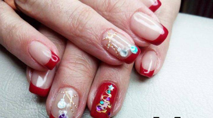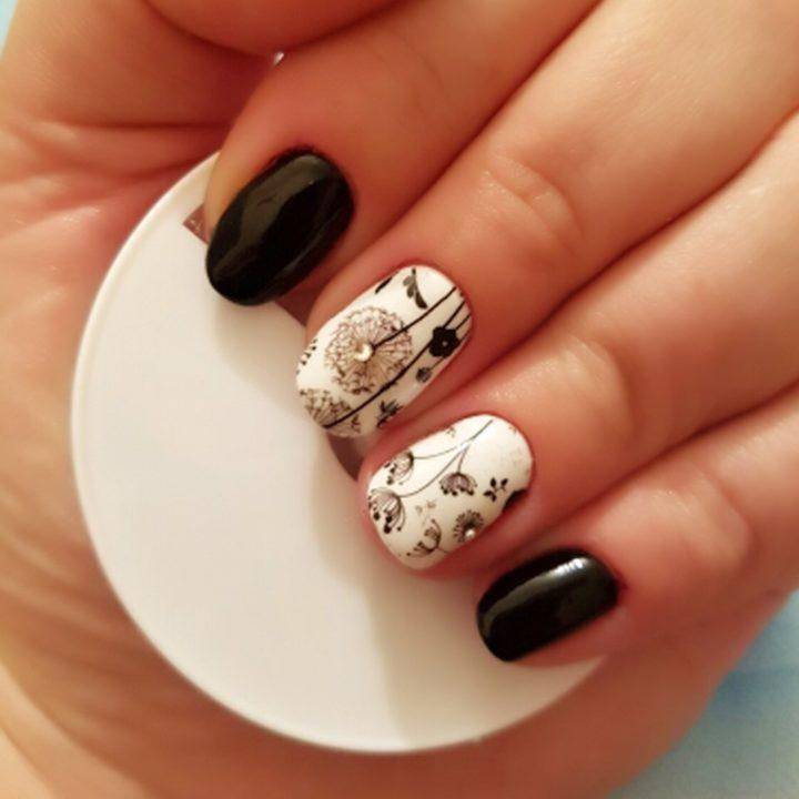 Дизайн хорошо смотрится с наклейками, полосками, стразами и техникой стемпинг. Элементы декора помогут создать более яркий и праздничный дизайн. Для создания элегантного маникюра попробуйте покрыть ногти матовым топом — результат будет выглядеть лаконично и утончённо.