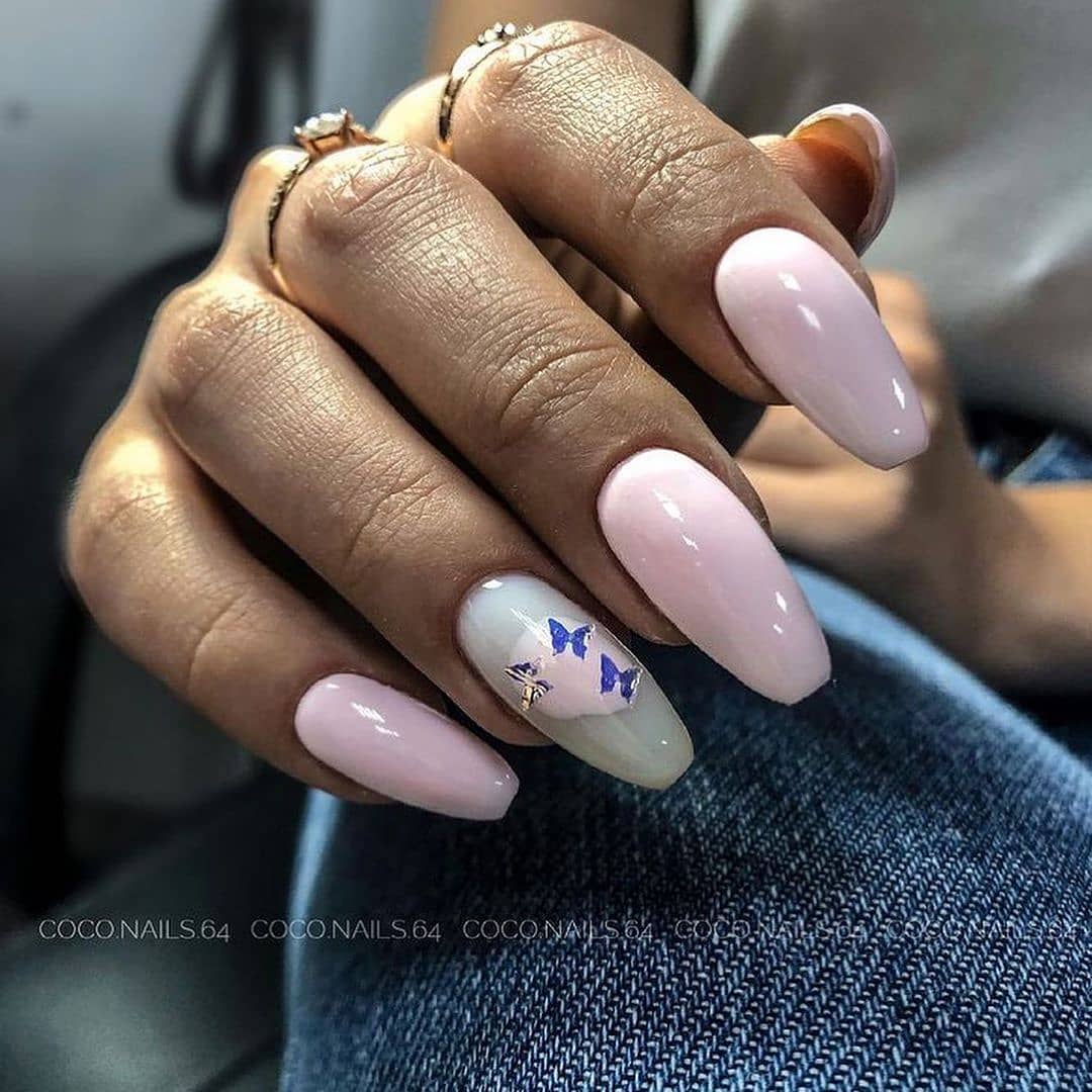 Оптимальный нежный цвет для летнего маникюра. Особенно подкупает его универсальность и возможность использовать по-разному — один цвет, множество дизайнов от классики до летнего нейл-арта с листьями, цветами.