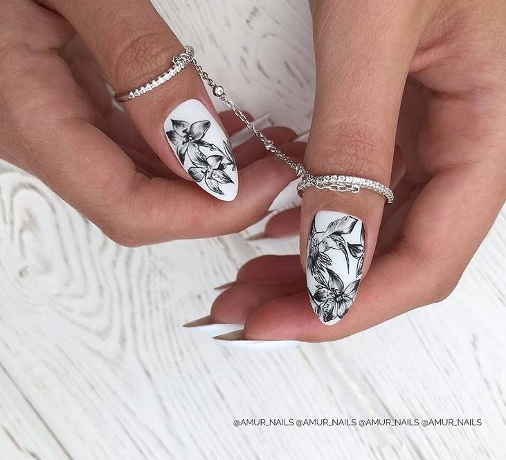 Социальные сети пестрят красочными наклейками и нарисованными узорами на ногтях. В авангарде вдохновения лежат растительные мотивы, от кактусов до опунций и пальм. Ботаническая тенденция нашла свое место в вдохновении человека навсегда. Среди лучших идей наклейки для ногтей с рисунками силуэтов лиц, глазок, бананов, экзотических цветов и рыб.