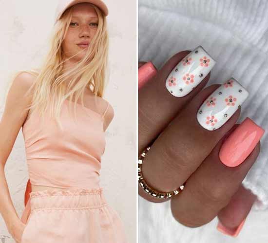 Цвет летнего спелого фрукта — и яркий, и пастельный одновременно. Персиковый — приглушенная альтернатива оранжевому. Также красивый компаньон для ярких нейл-акцентов — сочетайте с белым, фуксией, салатовым, оттенком бирюзы.