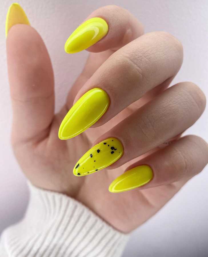 Броская абстракция завоевала списки модных трендов не только в фэшн-индустрии, но и в мире маникюра. Не бойтесь сочетать красочные оттенки и яркий декор. Тандем белого горошка, космических разводов и разнообразных линий — все это смотрится круто и новомодно. С таким дизайном вы будете выглядеть суперстильно и молодежно.