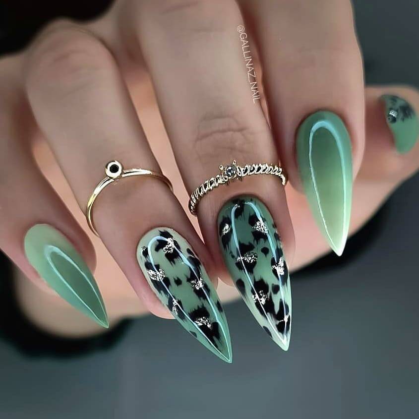 Модный летний маникюр не может существовать без животных принтов. Этот дизайн не покидает списки трендов уже несколько лет. Он придает нотку стиля любому образу. Девушки особенно любят выбирать имитацию кожи зебры, тигра, коровы, черепахи и леопарда. С таким оформлением ноготков можно смело посещать любое мероприятие.