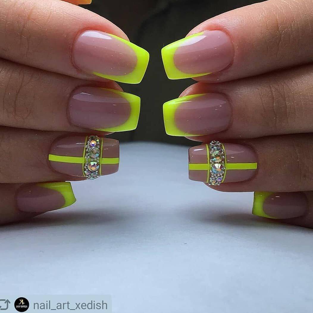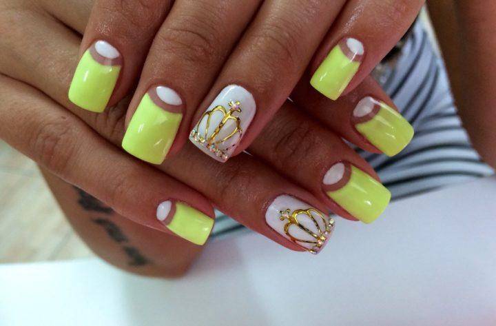 В этом сезоне на загорелой коже отлично будут смотреться ногти в неоновом сочном цвете. Делайте ставку на оттенки желтого солнца и голубого неба. Для тех, кто больше любит пудровые цвета, есть хорошая новость – нюдовые оттенки по-прежнему в моде. На ваших ногтях будет круто смотреться бессмертный пудрово-розовый или оттенки персикового. Они идеально сочетаются с пикантным платьем или туфлями на высоком каблуке.