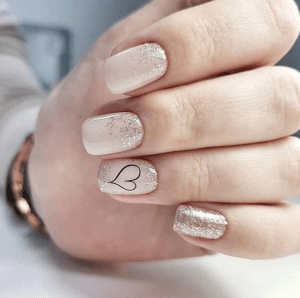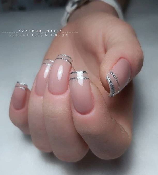 Немного блеска в лунках или на кончиках ногтя сделают вечерний маникюр не только изысканным и стильным, но и в меру ярким.