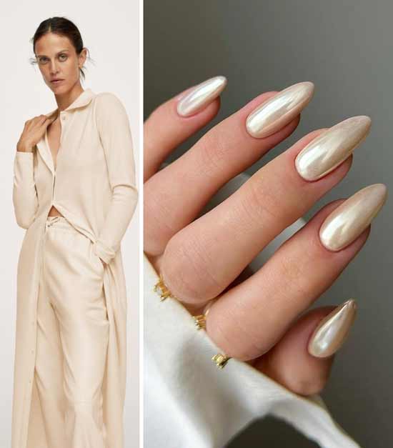 - Монотонный маникюр: покрасьте все ногти в одинаковый молочный оттенок для создания чистого и классического маникюра.