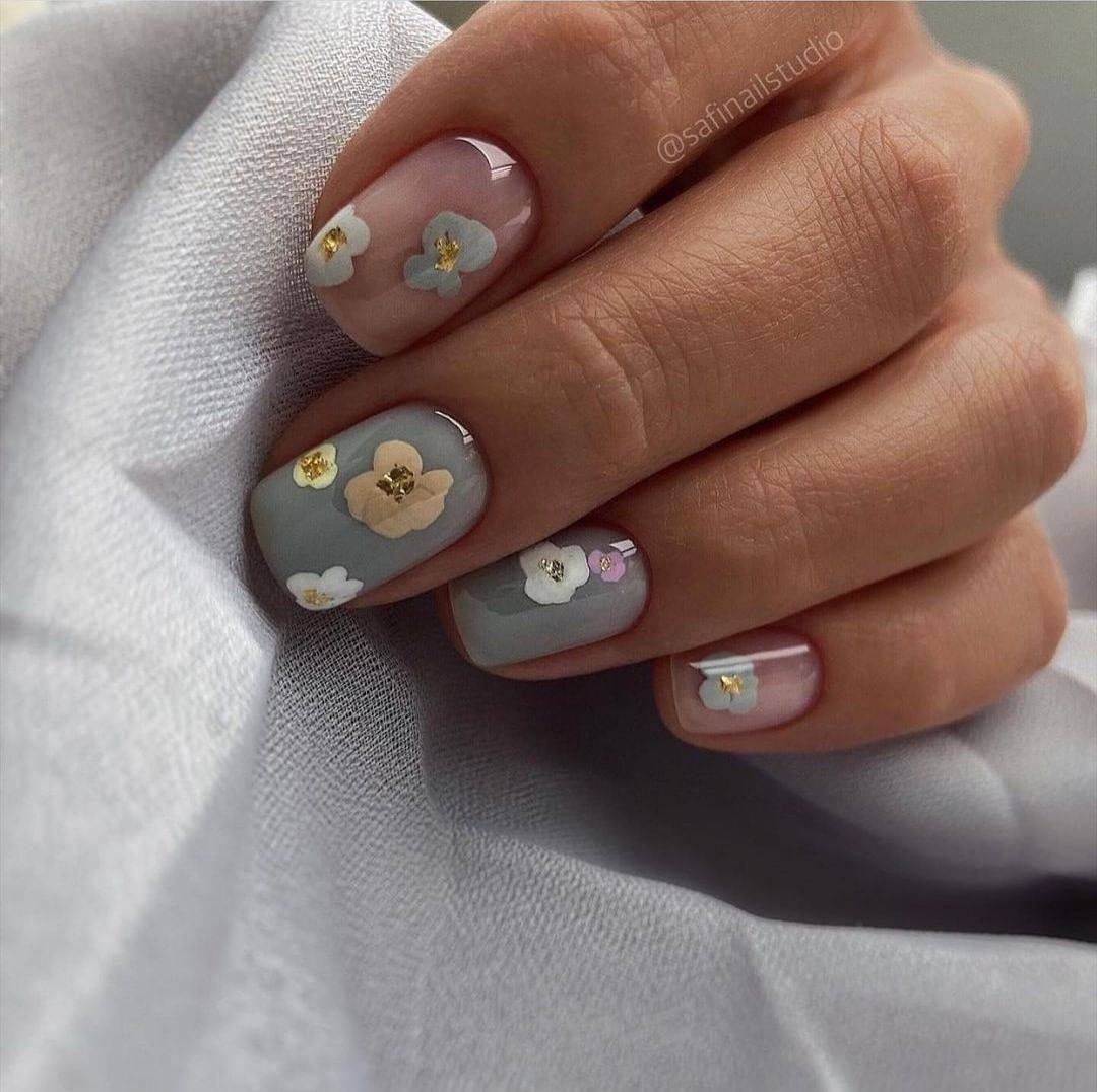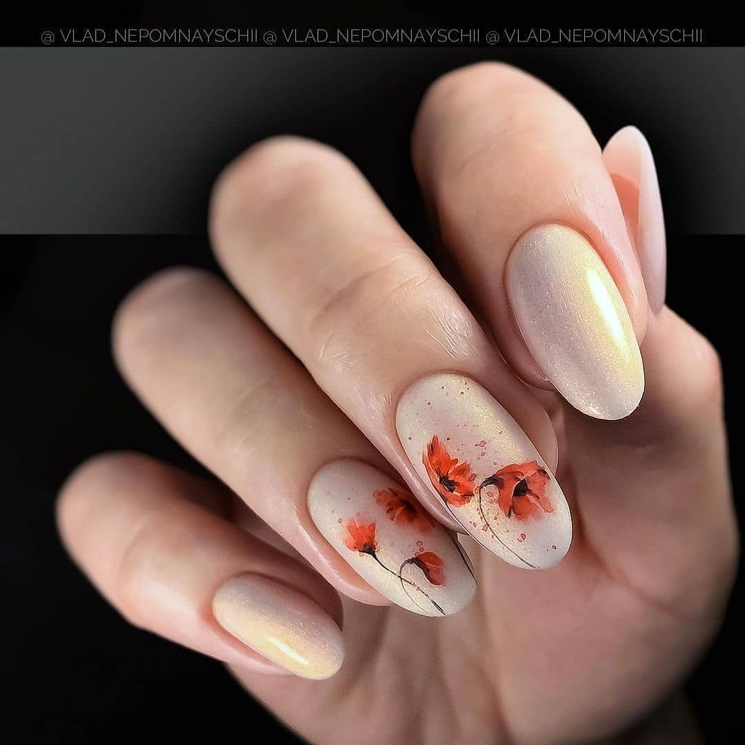 Например, весьма необычно будет выглядеть жемчуг в качестве сердцевинки летних цветов. Так как в тренде разноцветные ногти, то и изображения растений могут выполняться в разных оттенках.
