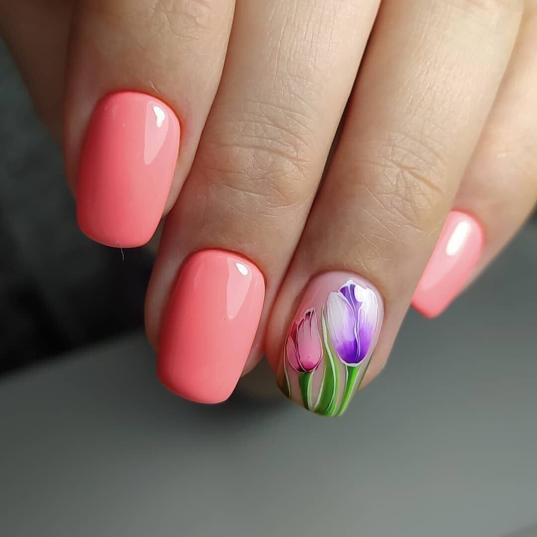 Так как в тренде разноцветные ногти, то и изображения растений могут выполняться в разных оттенках