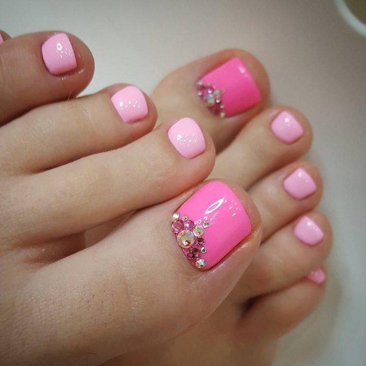 Нежная палитра розового цвета весьма привлекательна и нежна. Розовый универсальный цвет. Он подходит под разную одежду и обувь, что очень удобно. С помощью розового цвета можно создавать разнообразные варианты педикюра.