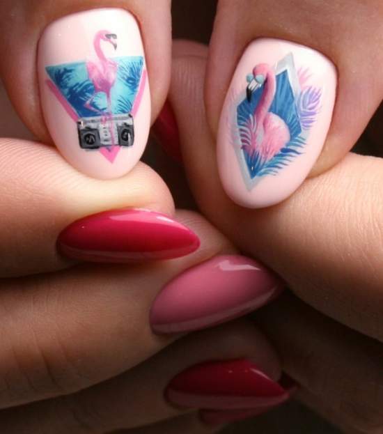 Фламинго будут смотреться интересно и утонченно. Бабочки тоже все еще в моде, но дизайн с ними перепробовали уже все окружающие, поэтому он смотрится не свежо, а стандартно. Чтобы избежать скуки, предлагается заменить бабочек на другую интересную живность. К примеру, фламинго.
