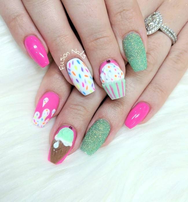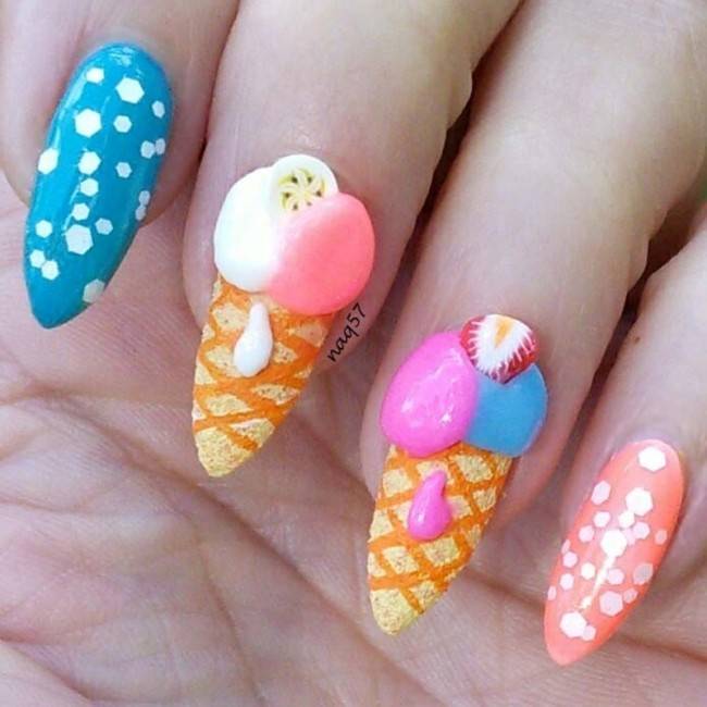 Яркие картинки на ноготках привлекают к себе повышенное внимание окружающих, так что такой модный летний маникюр 2021 года подойдет не всем. Беззаботные старшеклассницы, студентки и девушки, чья профессия не обязывает выбирать преимущественно бежевый маникюр, могут смело позволить себе превратить ручки в объект искусства