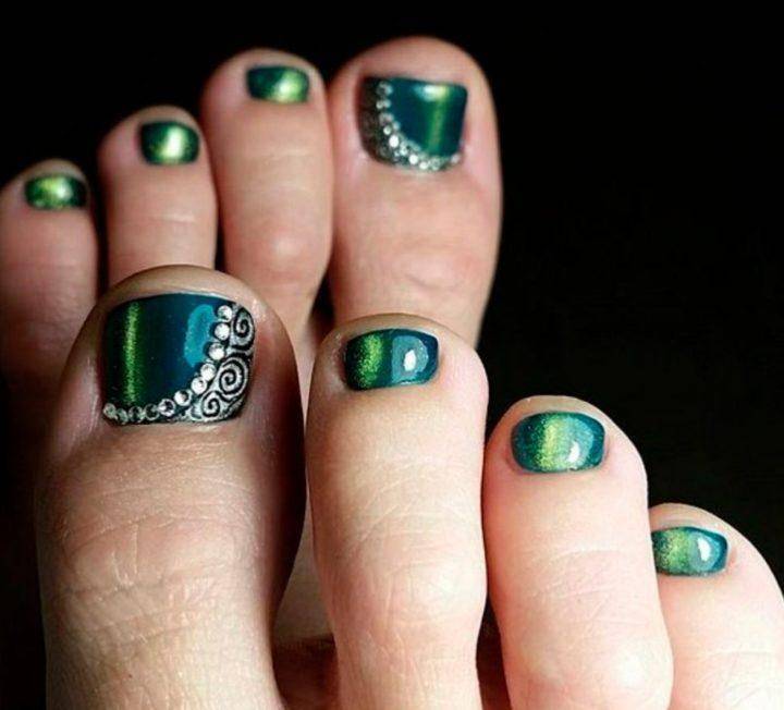 Зеленый представлен во множествах оттенков, среди которых самыми популярными является бутылочный, изумрудный, мятный и ментоловый. Лучше всего зеленый цвет будет смотреться в технике нанесения кошачий глаз.