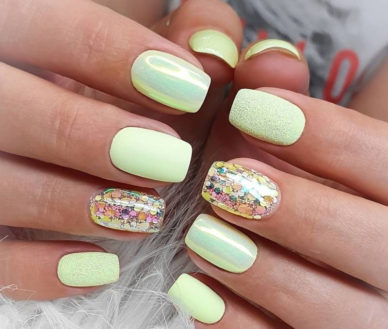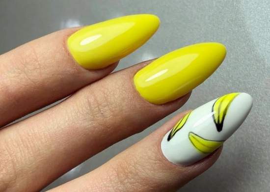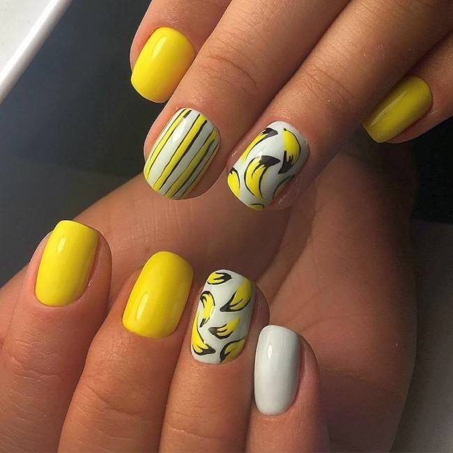 Желтый, лимонный, грушевый и солнечный будут модными летом этого года. Такой цвет ассоциируется с солнечным днем, от чего на сердце становится теплее. Желтый оттенок превосходно подходит на летний период, словно отражая солнышко на ваших ноготках.