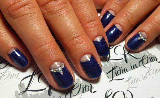 - Полуфренч в сочетании с геометрией, полосками, стразами.