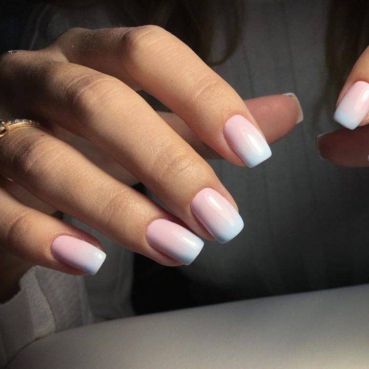 Дизайн омбре чаще всего исполняют на коротких ногтях квадратной формы, но также не исключены и другие варианты, все зависит от вкуса модницы.