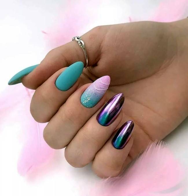 Эта техника популярна и будет лидером еще ни один сезон. Такой дизайн легок в выполнении и лучше смотрится под матовым покрытием.