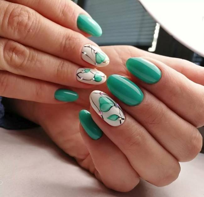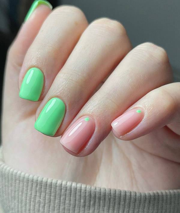 Зеленый — цвет жизнерадостности и жизни. Он олицетворяет растение, начало новой жизни и ее процветание. Если вы не могли определиться с однотонным выбором лака, то зеленый станет для вас своеобразной палочкой-выручалочкой.