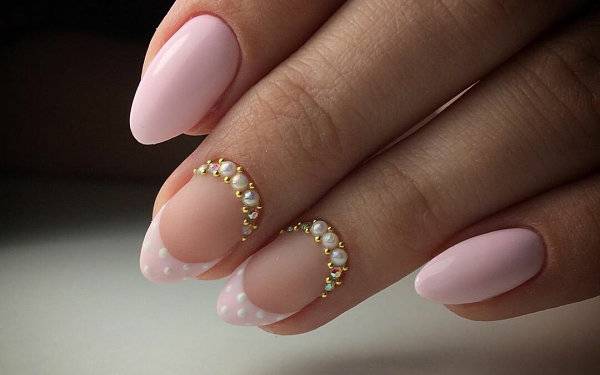 Чаще всего французский маникюр комбинируют с блестками, стразами или камнями. Они придают праздничный блеск даже самому обыденному дизайну.