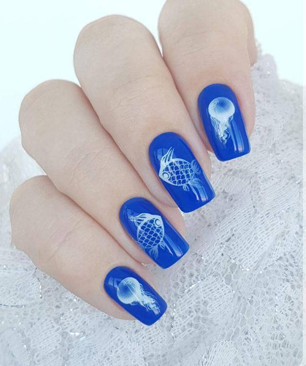 Если вы не умеете рисовать, то можете подбирать наклейки. Украшать рыбки могут любое ногтевое покрытие, даже классический френч.