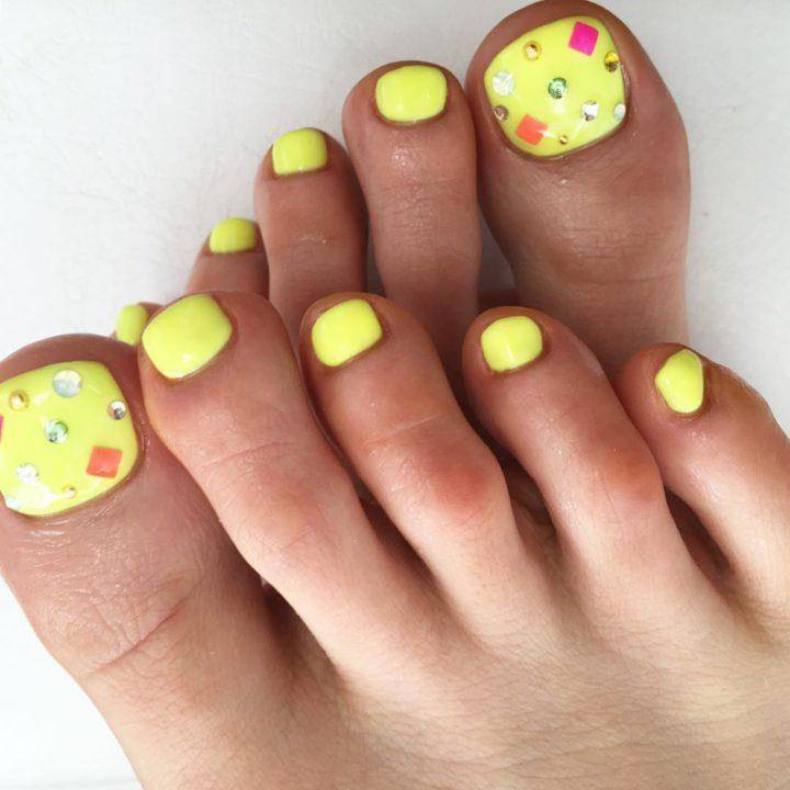 Весьма яркий и броский педикюр, который относят к кислотным видам