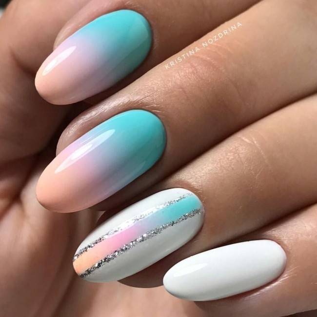 Лаконичное омбре — это нежные и пастельные оттенки лака, которые мягко и плавно образуют единый цвет. Летом 2023 года не рекомендуется использовать яркое и темное омбре. Именно лаконичный, простой, минималистический и нежный вариант будет в моде. Маникюр омбре можно дополнять небольшим количеством декора: стразы, легкие рисунки, а также фольга. Лаконичное омбре превосходно смотрится на разной форме ногтей и длине.