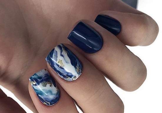 Абстрактный дизайн не сдает своих позиций. Такой маникюр всегда будет неповторимым. Даже если прийти к мастеру с конкретной идеей, повторить результат точь-в-точь с абстракцией получится вряд ли. Для создания маникюра можно использовать гель-лаки, краски, фольгу. Достаточно выбрать красивый оттенок гель-лака для фона, а с помощью контрастных цветов и кисти поставить на нем хаотичные разводы, мазки и кляксы.