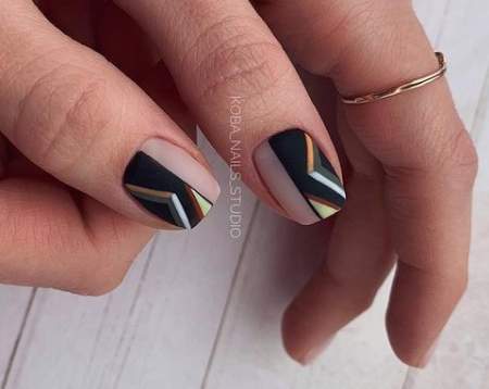 Геометрические узоры — еще один вариант маникюра, который отлично подходит для коротких ногтей. Здесь можно использовать различные формы и линии, создавая необычные узоры и комбинации цветов.